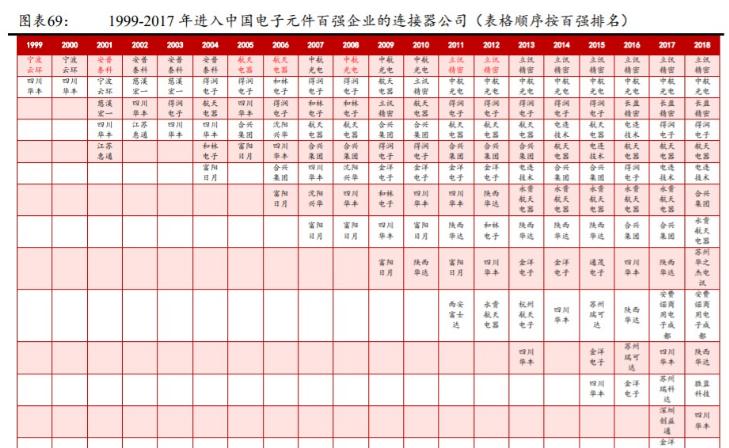 本章從長(zhǎng)遠(yuǎn)的角度出發(fā),試圖回顧國(guó)內(nèi)連接器行業(yè)格局的變化,從競(jìng)爭(zhēng)的角度考慮哪些類型的企業(yè)能夠成功成長(zhǎng)。自1999年以來(lái),中國(guó)電子元器件協(xié)會(huì)每年都在官網(wǎng)公布國(guó)內(nèi)電子元器件企業(yè)100強(qiáng),覆蓋國(guó)內(nèi)主要經(jīng)營(yíng)連接器、電阻、電容、電感的企業(yè)。思考競(jìng)爭(zhēng)格局的演變是本文的重點(diǎn),便于我們對(duì)連接器行業(yè)本身的商業(yè)模式有更深入的了解。2012年(含)以后,電子元器件協(xié)會(huì)在公布百?gòu)?qiáng)名單時(shí)會(huì)附上各企業(yè)主營(yíng)業(yè)務(wù),我們會(huì)篩選出連接器行業(yè);從1999年到2011年,我們對(duì)每家公司進(jìn)行了仔細(xì)的梳理,選擇了以連接器為主要產(chǎn)品的公司作為研究對(duì)象。值得一提的是,一些原本以連接器業(yè)務(wù)起家的公司,不僅包括連接器本身,我們還將這類公司視為連接器企業(yè),并不詳細(xì)劃分收入,直接使用協(xié)會(huì)公布的收入數(shù)據(jù),保持前后對(duì)比的統(tǒng)一。例如,李勛精密,其目前的業(yè)務(wù)包括連接器、電聲器件等。仍然將其視為電子元器件協(xié)會(huì)公布的2012年后百?gòu)?qiáng)企業(yè)中的連接器企業(yè),并以其全部收入作為排名依據(jù)(甚至是世界知名的連接器行業(yè)信息公司畢曉普Associate)。所以更準(zhǔn)確的說(shuō),本章討論的是以連接器起家的公司,思考如何一步步擴(kuò)大收益規(guī)模,不斷提升行業(yè)地位,為股東創(chuàng)造價(jià)值。梳理后可以發(fā)現(xiàn),連接器競(jìng)爭(zhēng)格局的變化有以下三個(gè)特點(diǎn):(1)雖然電子元器件應(yīng)用廣泛,如電容器等,但競(jìng)爭(zhēng)格局的變化程度與連接器不同;(2)連接器企業(yè)初始產(chǎn)品對(duì)應(yīng)的軌道市場(chǎng)空間與公司后期發(fā)展模式相關(guān)性較弱,即一些初始位于市場(chǎng)空間較大軌道的企業(yè)可能不如下游市場(chǎng)空間較小的公司;(3)對(duì)于同一競(jìng)爭(zhēng)領(lǐng)域的連接器行業(yè),如軍工產(chǎn)品、消費(fèi)電子等,競(jìng)爭(zhēng)格局的演變也發(fā)生了很大變化。連接器行業(yè)深度報(bào)道:為什么要成為領(lǐng)導(dǎo)者