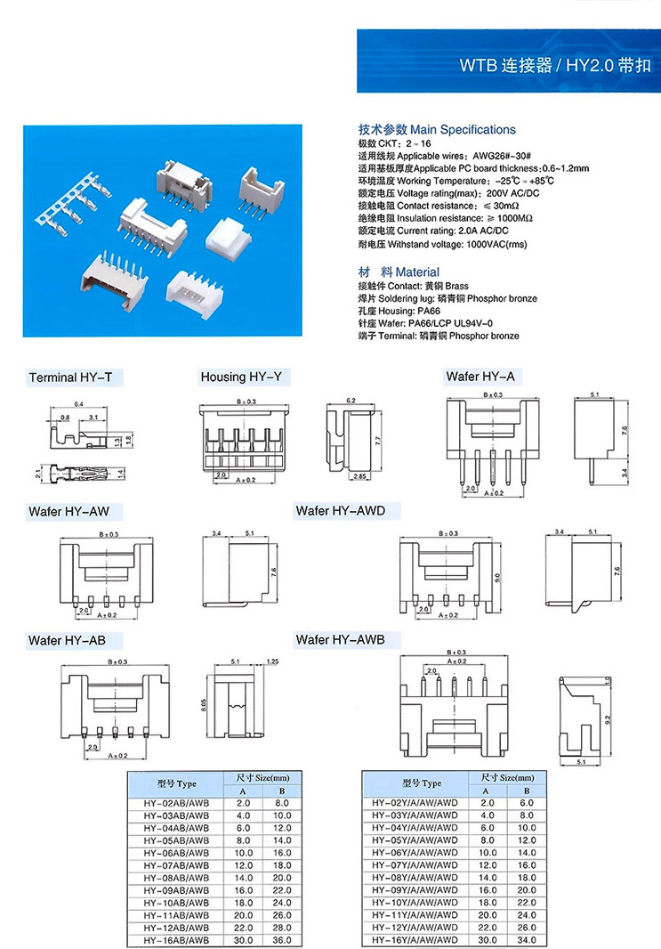 HY2.0帶扣WTB連接器