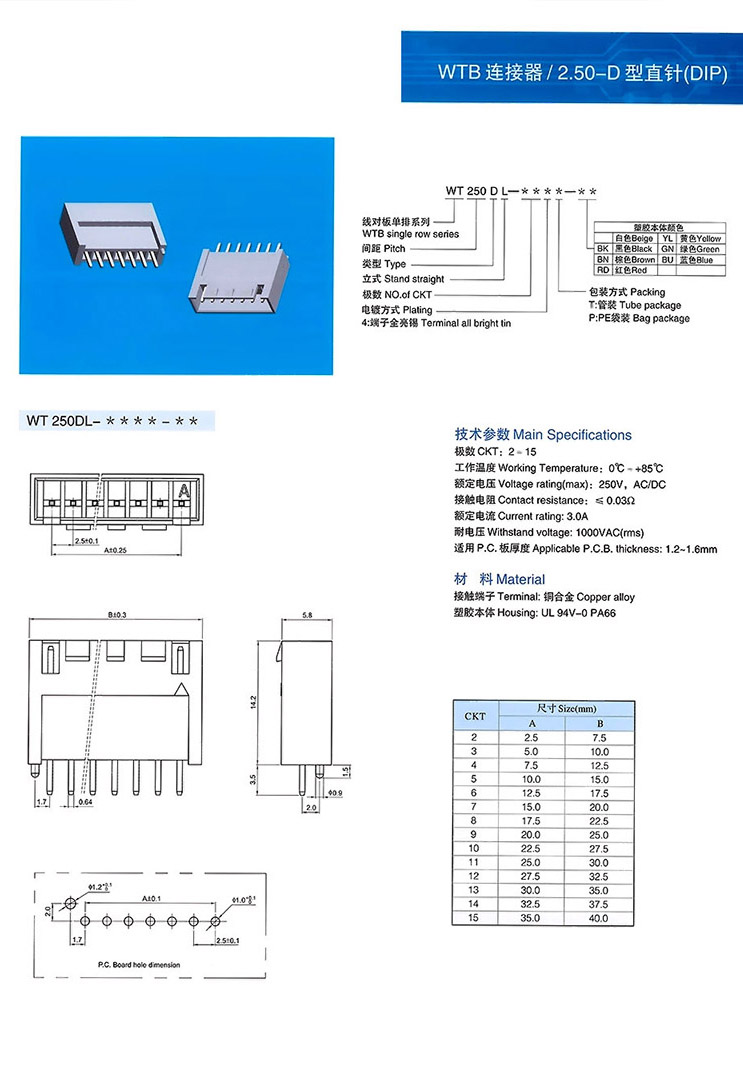 2.50-D型直針(DIP)WTB連接器
