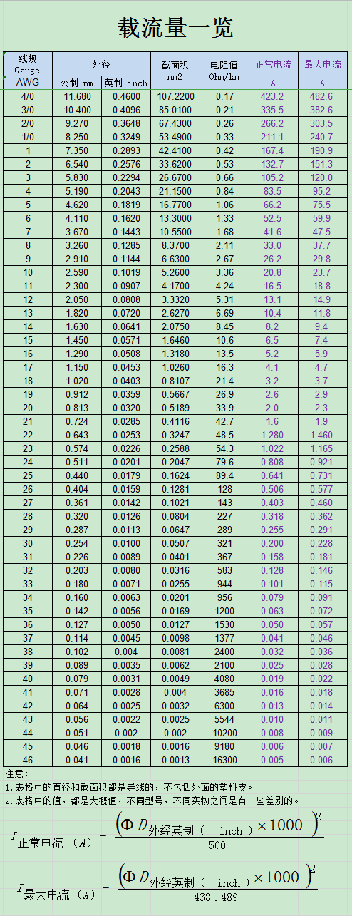我們目前比較常用的是UL標(biāo)準(zhǔn),單位為AWG【American Wire Gauge 美國線規(guī)】