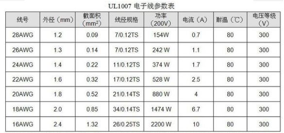 留意:同一線號,UL1015與UL1007的導(dǎo)體截面積、線數(shù)、線徑、阻值是一樣的,不同的外皮的規(guī)格。